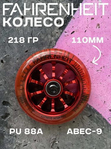 Колесо Fahrenheit 10-Spoked для трюкового самоката, 110*24 mm, красный/прозрачный красный