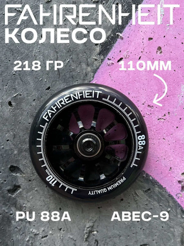 Колесо Fahrenheit 10-Spoked для трюкового самоката, 110*24 mm, черный