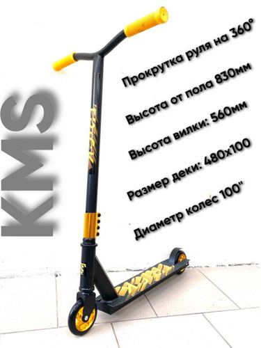 Трюковой самокат KC SPORT WX-ST220 (Колеса 100 мм PU рама ALU/STEEL) ЧЕРНЫЙ