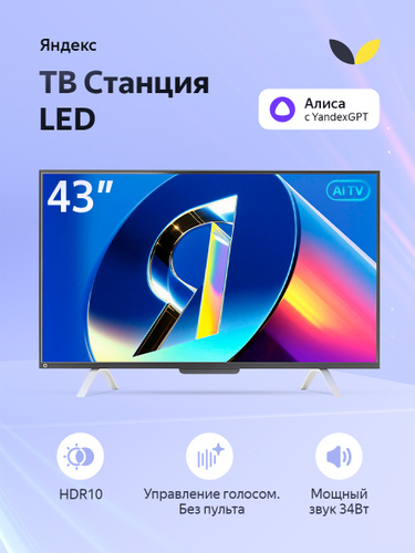 Яндекс Телевизор ТВ Станция Бейсик LED с Алисой, SMART TV 43″ 4K UHD, черный, черно-серый