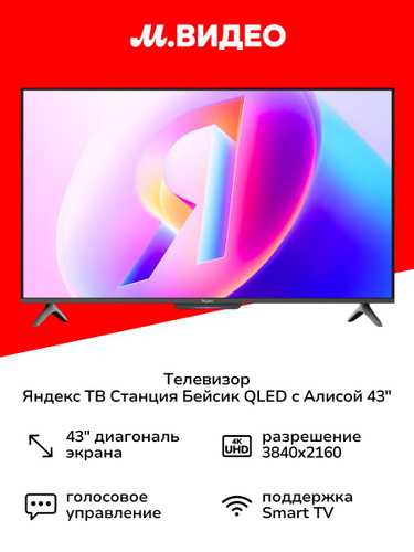 Яндекс Телевизор ТВ Станция Бейсик QLED с Алисой 43″ 4K UHD, черный