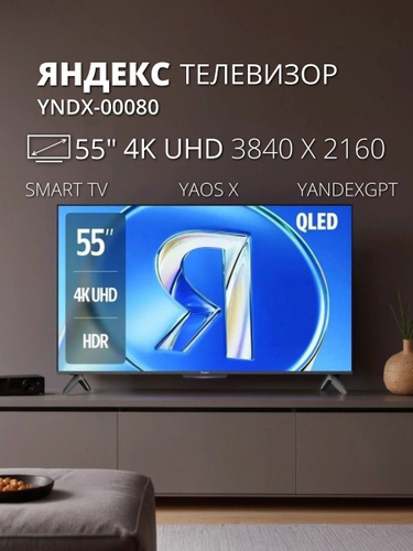 Яндекс Телевизор ТВ Станция Бейсик QLED с Алисой VA YNDX-00080 Smart TV (Android, iOS), Wi-Fi, Bluetooth, HDR, Умный дом (Яндекс, Matter), с пультом, 2025 г., 55" 4K UHD, черный