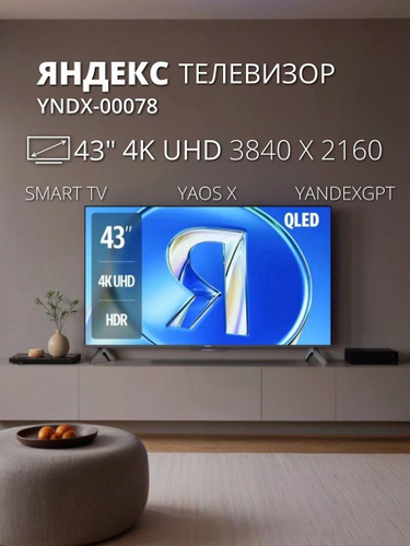 Яндекс Телевизор ТВ Станция Бейсик QLED с Алисой VA YNDX-00078 Smart TV (Android, iOS), Wi-Fi, Bluetooth, HDR, Умный дом (Яндекс, Matter), с пультом, 2025 г., 43" 4K UHD, черный