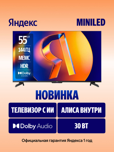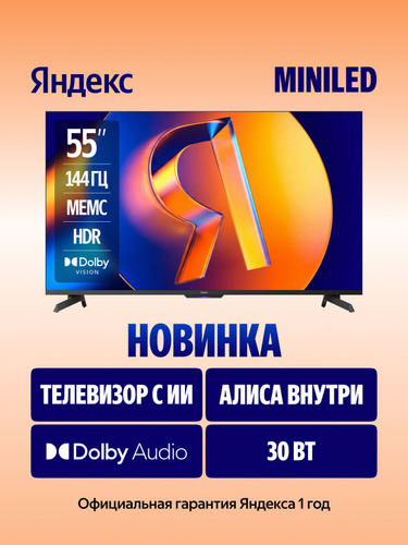 Яндекс Телевизор Mini LED, QLED, ТВ Станция Про с Алисой (YNDX-00103), SMART TV, 120 Гц 55" 4K UHD, черный