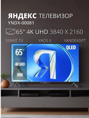 Яндекс Телевизор ТВ Станция Бейсик QLED с Алисой VA YNDX-00081 Smart TV (Android, iOS), Wi-Fi, Bluetooth, HDR, Умный дом (Яндекс, Matter), с пультом, 2025 г., 65" 4K UHD, черный