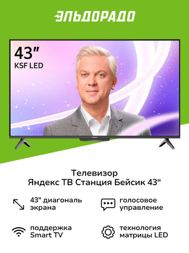 Яндекс Телевизор Direct LED, ТВ Станция Бейсик с Алисой (YNDX-00074), SMART TV, 60 Гц 43" 4K UHD, черный