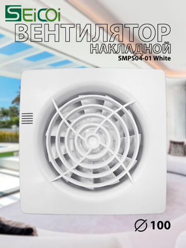 Вентилятор накладной Seicoi Floxy-100 White (белый матовый), с обратным клапаном, 100 мм