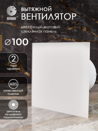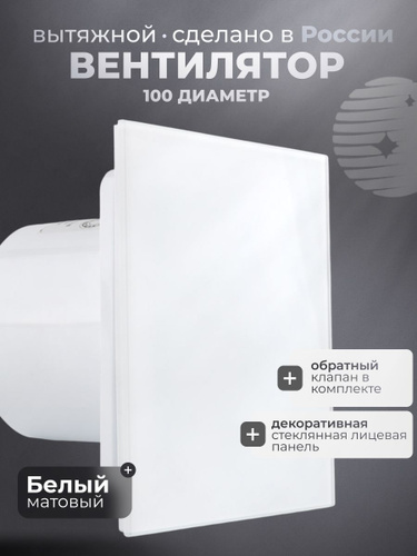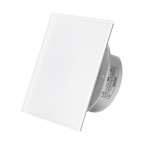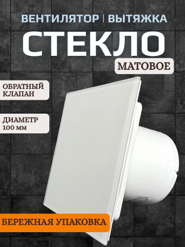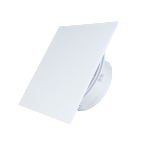 Вентилятор вытяжной осевой бытовой настенный, стеклянная лицевая панель, цвет белый матовый зеркальный, D 100 мм, диаметр 100 мм (для кухни, ванной, санузла, туалета)