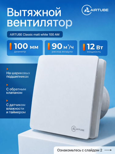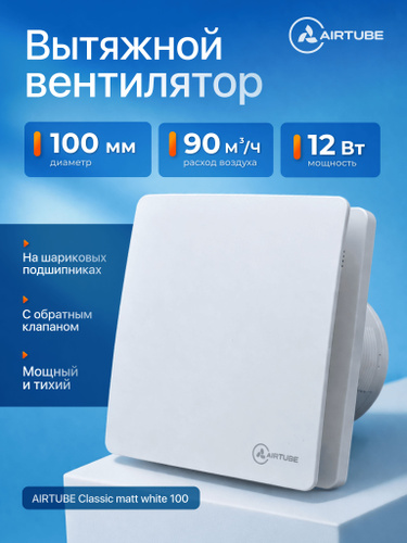 Вентилятор вытяжной 100мм с таймером и датчиком влажности AirTube Classic Matt White 100 AM, матовый белый
