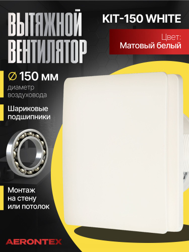 Вентилятор вытяжной 150мм белый матовый с обратным клапаном