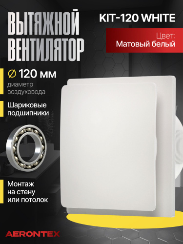Вентилятор вытяжной 120мм белый матовый с обратным клапаном