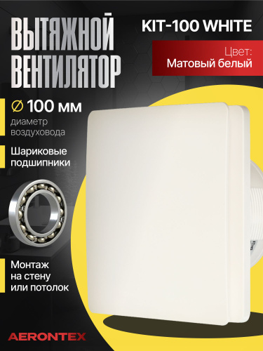 Вентилятор вытяжной Design Matt White 100мм накладной с обратным клапаном, матовый белый, дизайнерский, вентиляция для дома