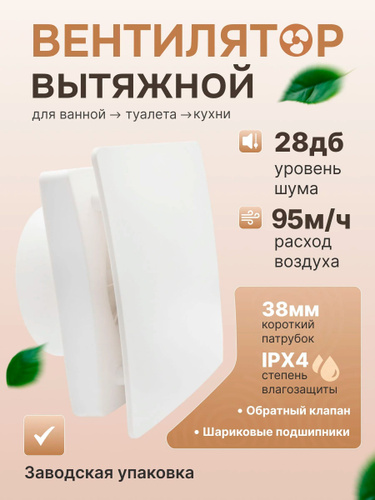 Вентилятор вытяжной 100 мм с обратным клапаном для ванной комнаты, туалета, кухни, белый матовый