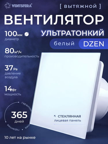 Вентилятор вытяжной с декоративной стеклянной лицевой панелью Ventsfera 100 DZEN White glass