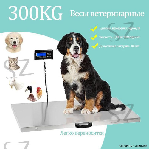 Весы ветеринарные 94 х 49 см, напольные, до 300 кг, электронные с дисплеем, платформенные для собак и кошек, для животных