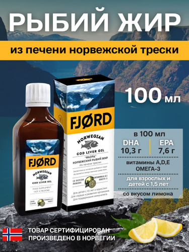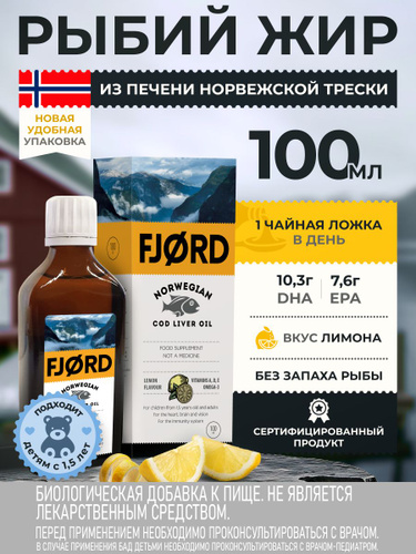 FJORD Омега-3 100 мл, Рыбий жир жидкий, жирные кислоты, Оmega 3, БАД для мозга, иммунитета, сердца и сосудов