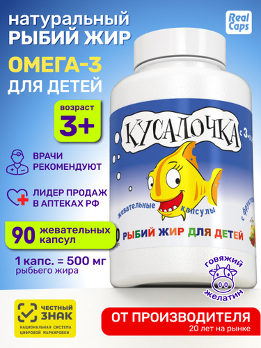 Омега 3 для детей Рыбий жир Кусалочка 90 жевательных капсул