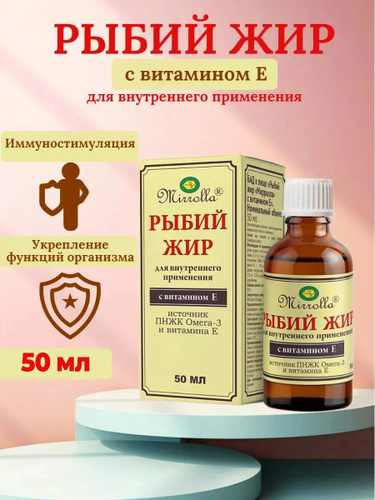 Биологически активная добавка к пище "Рыбий жир жидкий "Мирролла" с витамином Е, 50 мл.