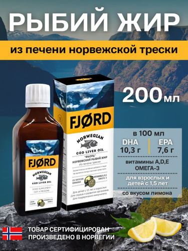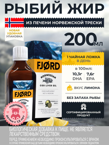 FJORD Омега-3 200 мл, Рыбий жир жидкий, жирные кислоты, Оmega 3, БАД для мозга, иммунитета, сердца и сосудов