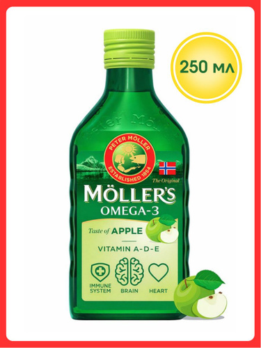 Омега-3 рыбий жир Moller жидкий, Яблоко, 250 мл
