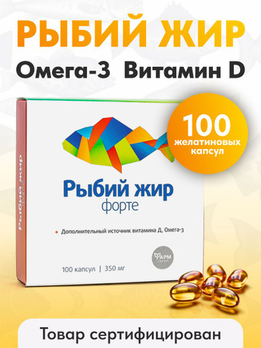 Рыбий жир форте, капсулы 350 мг №100 / комплект 2 шт. / ОМЕГА -3/ Общеукрепляющие витамины