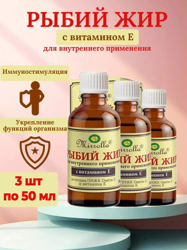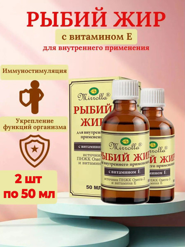 Биологически активная добавка к пище "Рыбий жир "Мирролла" с витаминами A, D, E, биологически активная добавка к пище "Рыбий жир жидкий "Мирролла" с витаминами: A, D и Е, 2 шт по 50 мл