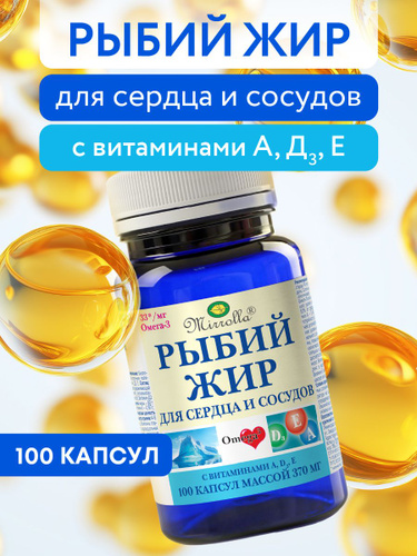 Биологически активная добавка Мирролла Рыбий жир с витаминами А Д Е капсулы 100 шт. 370мг