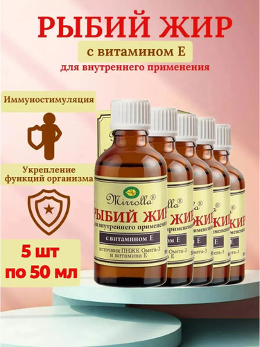 Биологически активная добавка к пище "Рыбий жир "Мирролла" с витаминами A, D, Е, 5 шт по 50 мл