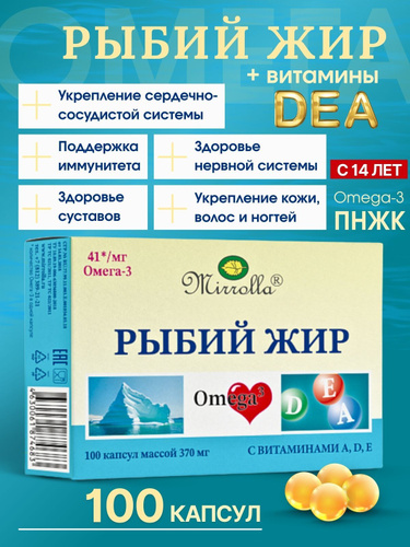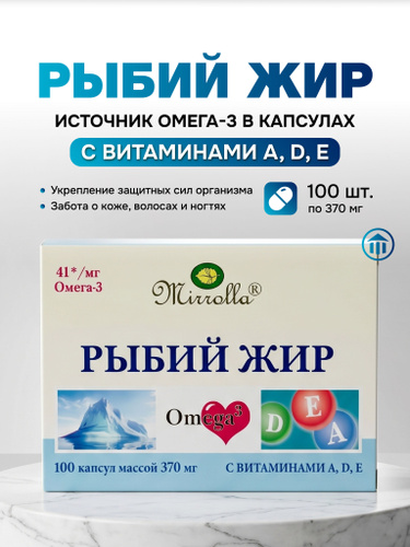 Mirrolla Рыбий жир с витаминами А, Д, Е капсулы массой 370 мг 100 шт