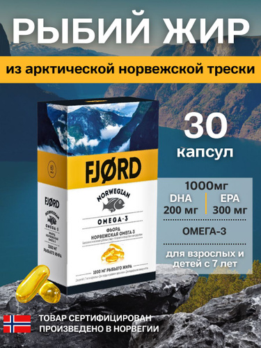 Омега 3 1000 мг Рыбий жир норвежский FJORD, 30 капсул