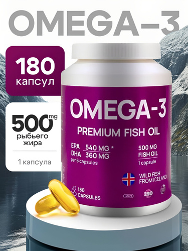 Омега 3 , 1000 мг рыбий жир для сердца и сосудов, для иммунитета, для работоспособности, 180 капсул, Omega 3