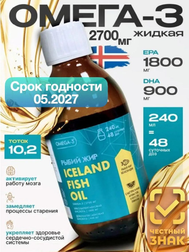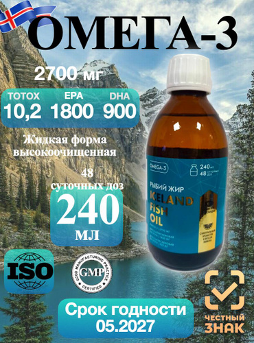 Рыбий жир жидкий Омега-3 2700мг. Исландия LYSI 240мл