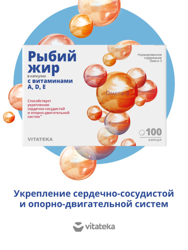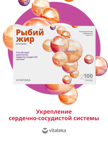 Рыбий жир, капсулы 0,37 г, 100 капсул без запаха, ВИТАТЕКА для укрепления организма, для сердца