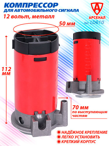 Компрессор для автомобильного сигнала пневмо-электрический 12В (корпус металл) КРАСНЫЙ арт. LD610
