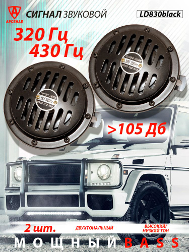 Сигнал звуковой автомобильный дисковый d-130 мм (2 шт) 105дБ, чёрный - арт. LD830Black