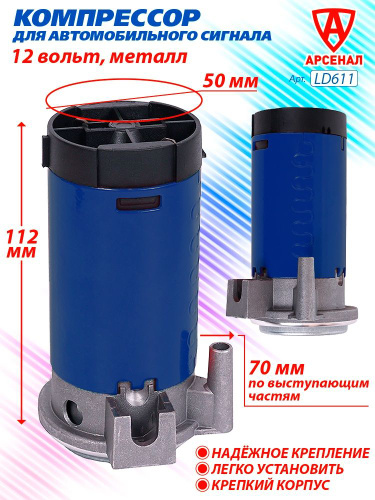 Компрессор для автомобильного сигнала пневмо-электрический 12В (корпус металл) СИНИЙ арт. LD611