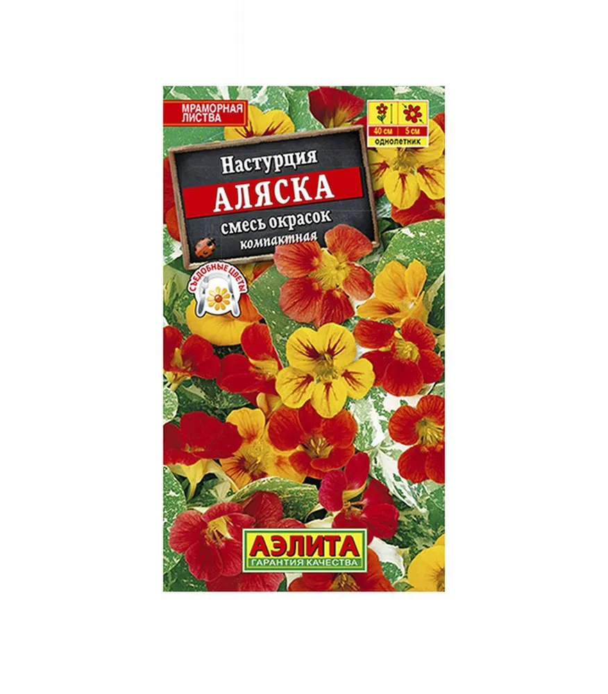 Эффектная обильноцветущая настурция с яркими цветками и декоративной мраморной листвой. Кустики компактные, ветвистые, до 40 см в высоту и ширину, усыпаны цветками Ø 4-6 см. Растут быстро. Цветение раннее и продолжительное, с июня до первых заморозков. Растения неприхотливые, тепло- и светолюбивые. Отлично растут в небольшом объеме земли. Идеально подходят для выращивания в садовых вазах и балконных ящиках. Органично впишутся в различные садовые композиции и придадут яркий акцент любому уголку сада.