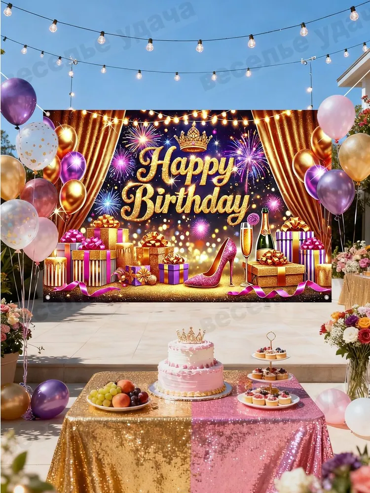 🎊 Пусть каждый день рождения будет ярким!Эта салфетка для фона на день рождения - идеальный выбор для создания теплой и радостной атмосферы вечеринки!🎈