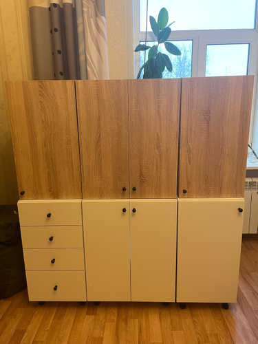 Насчет фурнитуры такое дело, что все все в кучке и непонятно куда-что крепить. Первый шкаф я собирала часов 5, а потом поняла что-куда и процесс был уже быстрее.