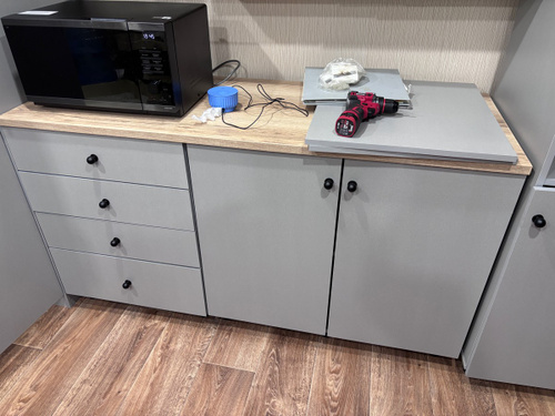 доставка в срок. в общем и целом хорошая кухня за свою цену. подобрала столешницу к ней. понравилось, что можно выбирать размер с точностью до сантиметра. кухню собирал сборщик, сказал норм. но верхние шкафы по качеству хуже. из нюансов - не доложили ручки, докупаю сама, продавец компесирует (обещал), нашла такие же. и ручки нормальные, не мелкие, удобно... Читать полностью