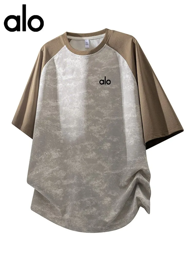 Большая футболка в стиле Alo с эффектом тай-дай и цветным блоком, свободный крой, дышащая спортивная одежда для полных фигур