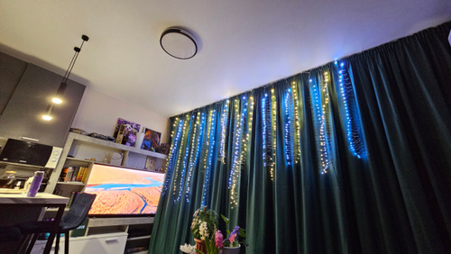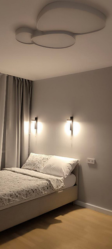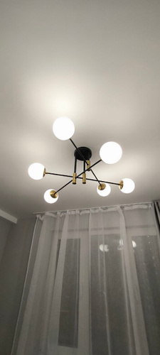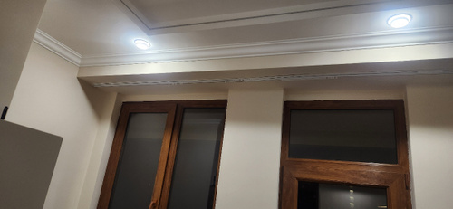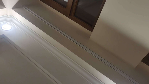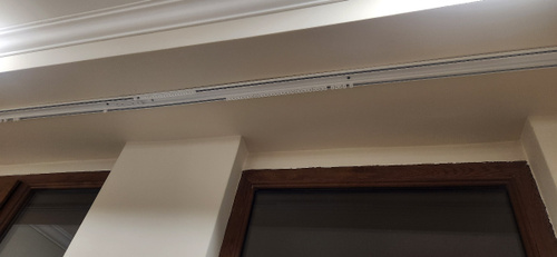 Карниз подходит для установки на потолок, включая варианты с натяжным или скрытым монтажом в нишу, что делает его универсальным решением для разных видов помещений. Отверстия для установки уже подготовлены, что значительно упрощает монтаж.