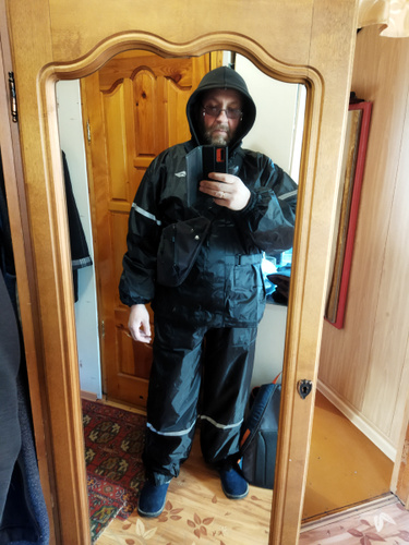 товар доставлен. внимательней с размером, брал 2 ХЛ, штаны очень пришли велики, куртка почти в притык садиться без экипа. выглядет качественно, ткань плотная не одноразовая. в дождь ещё не проверял, у нас ещё снег кругом лежит 🤷