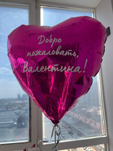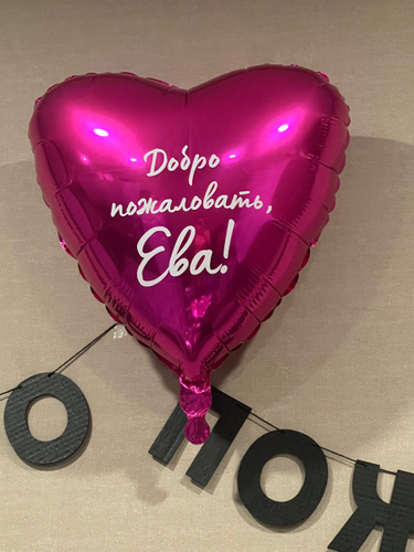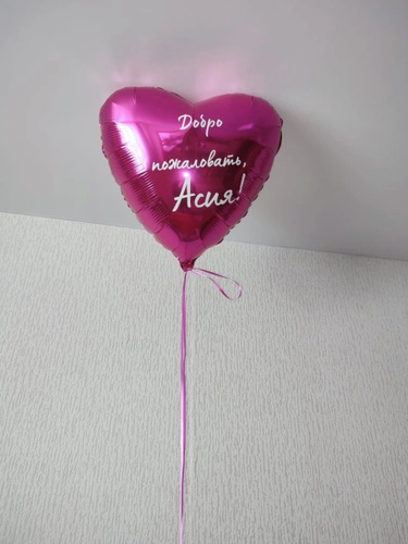 В наборе: -шар фольгированный, малиновое сердце, 45см, с надписью "Добро пожаловать, ИМЯ!"; -трубочка для надувания;