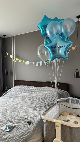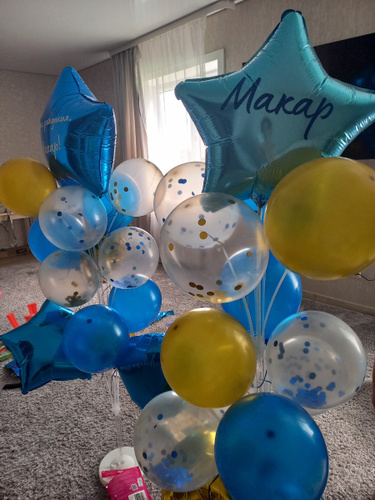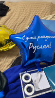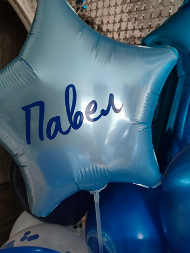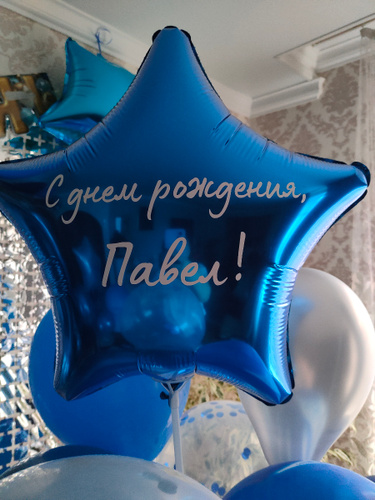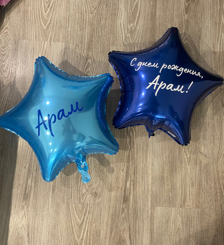 Воздушный голубой шар в форме звезды с именем и шар в форме звезды, синяя, с надписью "С днем рождения, "ВАШЕ ИМЯ"!". Шары можно надуть как гелием, так и воздухом. При надуве гелием шары будут летать. Имеют встроенный клапан, благодаря чему шары будут оставаться надутыми продолжительное время. Размер шаров в надутом виде 36 х 40 см.