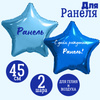 Звезда голубая и звезда синяя, шары именные, фольгированные, с надписями, для мужчины и мальчика "С днем рождения, Рашид!", 2 шарика